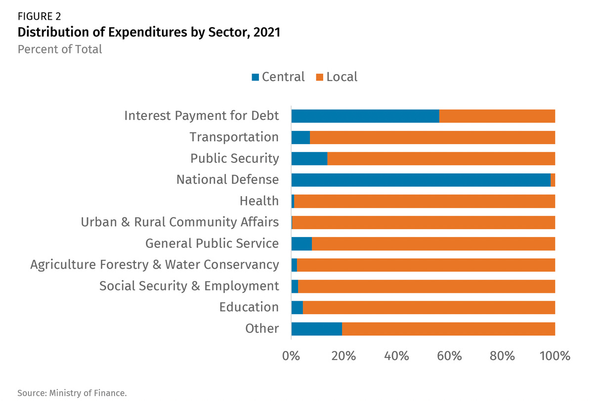 And if local governments go broke, Beijing will also have to step in and pay for all the public services they now deliver, including public transport, schools, and healthcare. In China, local governments shoulder the burden for most every public service. Beijing handles almost nothing but national defense.