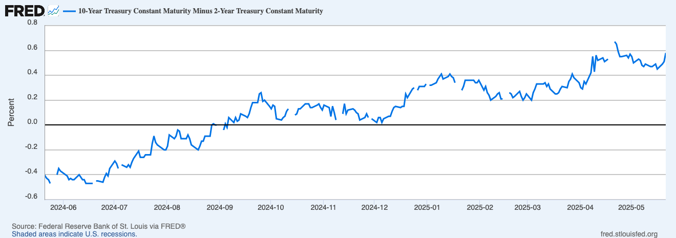 Trump on Tuesday went to Capitol Hill to personally threaten Republican holdouts to approve his budget package, which will cut taxes more than benefits, resulting in nearly $3 trillion in additional deficits through 2034. The prospect of further increases in the U.S. government’s $36 trillion in debt prompted Moody’s last week to become the last of the three big credit ratings agencies to drop its top rating on U.S. government creditworthiness. The S&P500 fell 1.6% Wednesday but is now down only about 2.5% from Trump’s inauguration as investors continue to cling to the bet that his pause 90-day pauses on imposing higher, “reciprocal” tariffs has skirted the risk of recession.