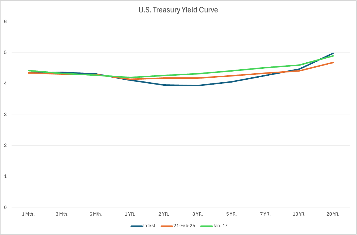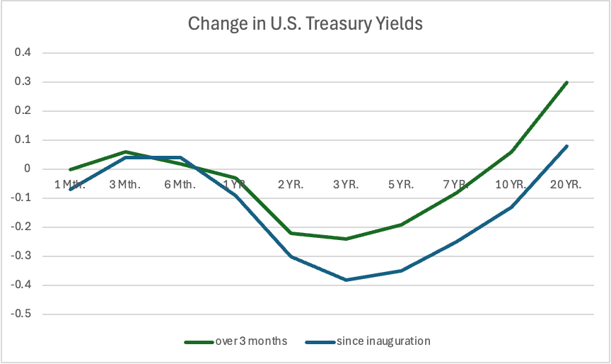 But uncertainty about what crazy thing Trump might do next (like take the two leading U.S. mortgage security agencies public) is keeping rates from falling for short-term bonds with maturities of less than a year, better known as Treasury bills. The result is a deepening inversion of the U.S. Treasury yield curve, with yields falling farthest in 3-year Treasuries as short-term uncertainty and long-term risk rises.