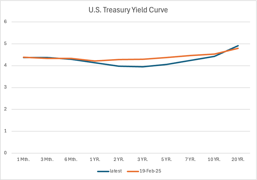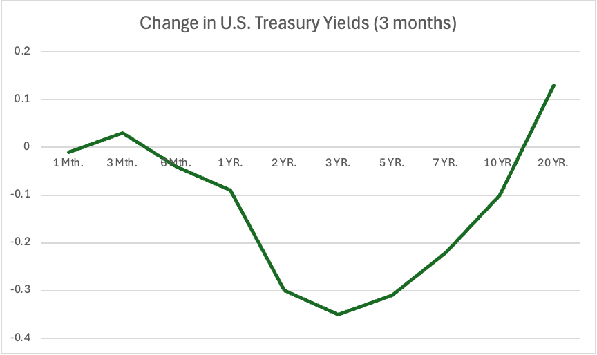 Moody’s Friday downgrade of U.S. debt has had a self-fulfilling aspect: it sent U.S. Treasuries lower and yields up, thereby raising the U.S. government’s borrowing costs and worsening the very debt burden it cited when cutting its AAA rating. Investors continue to reduce their exposure to policy risk in Washington by shifting into shorter-maturity Treasuries, continuing the inverting trend in the U.S. Treasury yield curve, with yields falling farthest in 3-year Treasuries.